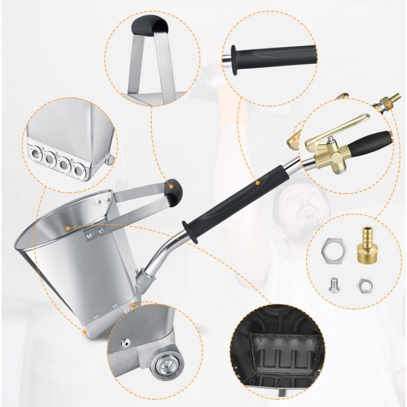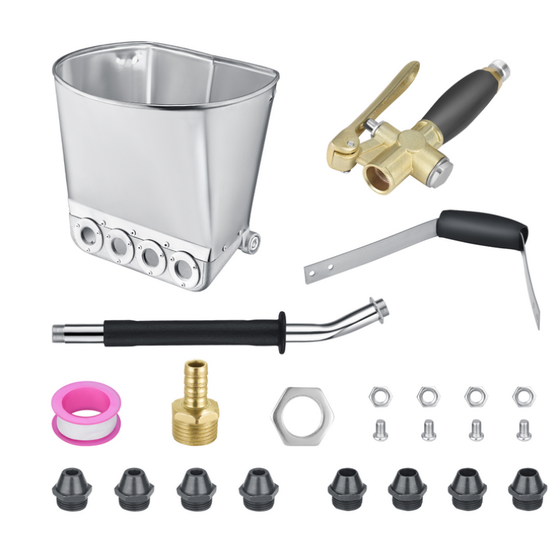 This makes the set ideal for spraying plaster with the most typical plasters and masonry mortars: thin (fine) and semi-thick plaster mortars: machine, clay, cement-lime
